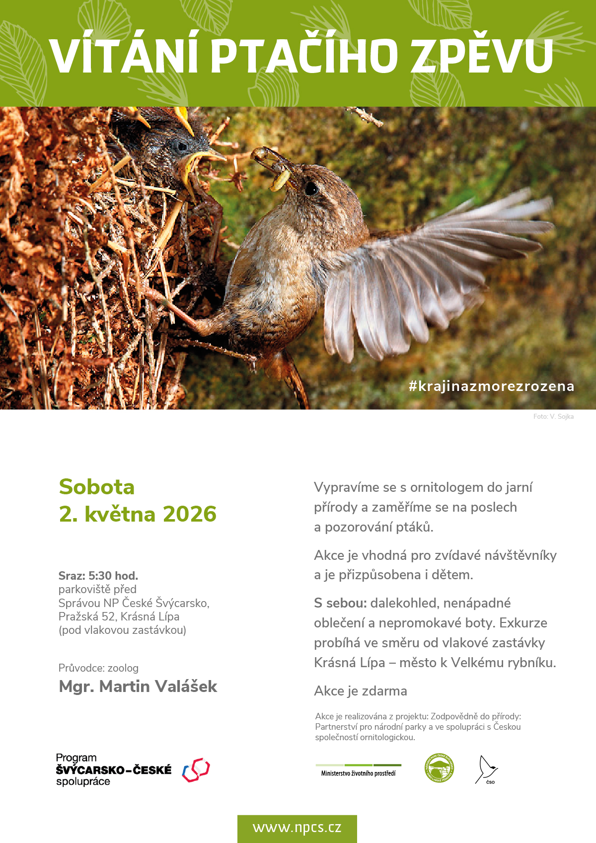 Správa Národního parku České Švýcarsko pořádá ve spolupráci s Českou ornitologickou společností oblíbenou jarní akci s názvem Vítání ptačího zpěvu.